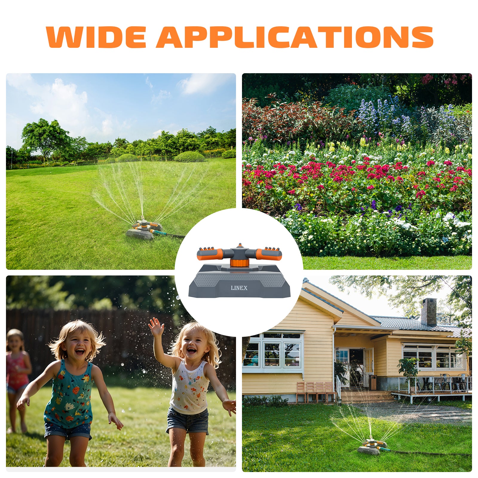- Expandable Coverage: Designed with convenient extension options for expansive gardens, LINEX lawn sprinklers for large areas allow you to connect multiple units effortlessly. Expand your coverage area and increase the spraying distance to handle gardens of any size with ease