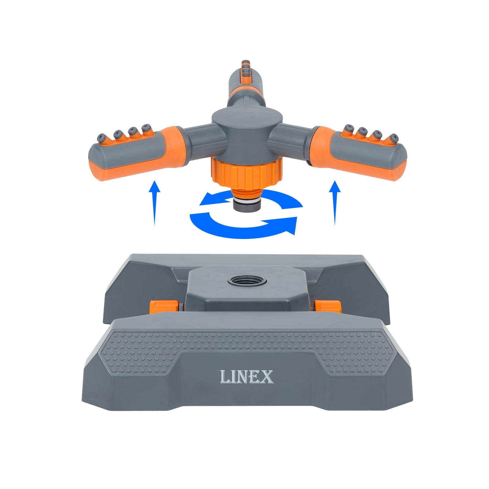 - Stable Base Design: The LINEX rotating water sprinklers for the yard feature a stable base, ensuring the lawn sprinkler remains steadfast wherever placed. Even in changing environments, it maintains stability, providing your lawn and garden with consistent and nourishing water distribution